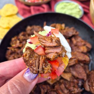 De tijd voor heerlijke stoof gerechten is weer aangebroken. Ik vind het heerlijk om 's ochtends al te beginnen waardoor het huis de gehele dag heerlijk ruikt. Om het proces te volgen hoe het langzaam aan naar een heerlijk mals, smeuïg en smaakvol recept gaat. Deze keer koos ik voor een Mexicaans gerecht (Barbacoa) dit omdat de smaken me altijd heel erg aanspreken en de combinaties ook verrukkelijk zijn. Barbacoa wordt gemaakt met traditionele smaken waaronder de smaak van chipolte. Nu hoor ik je denken wat is chipolte, dat zijn gerookte jalapeñopepers. Ik gebruik voor dit gerecht de chipolte in adobesaus maar hou je van pittig dan kan je ook de gewone chipolte pepers gebruiken. Dit gerecht kan je met rijst combineren, wraps etc maar ik koos ervoor om hem te serveren met nacho chips, tomatensalsa, guacamole en zure room. Benieuwd geworden naar het barbacoa recept? Lees dan snel verder