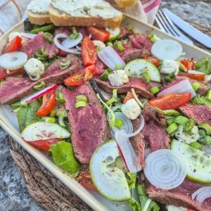 Een perfecte lauw warme salade die past bij een heerlijke zomerse dag. Het grappige is dat ik sinds een paar jaar pas biefstuk eet. Daarvoor maakte ik het altijd wel klaar voor manlief maar moest ik er zelf niks van hebben. Maar met de tijd ben ik biefstuk meer gaan waarderen en vind ik het heerlijk om het te verwerken in Salades. Neem snel een kijkje bij het Recept.