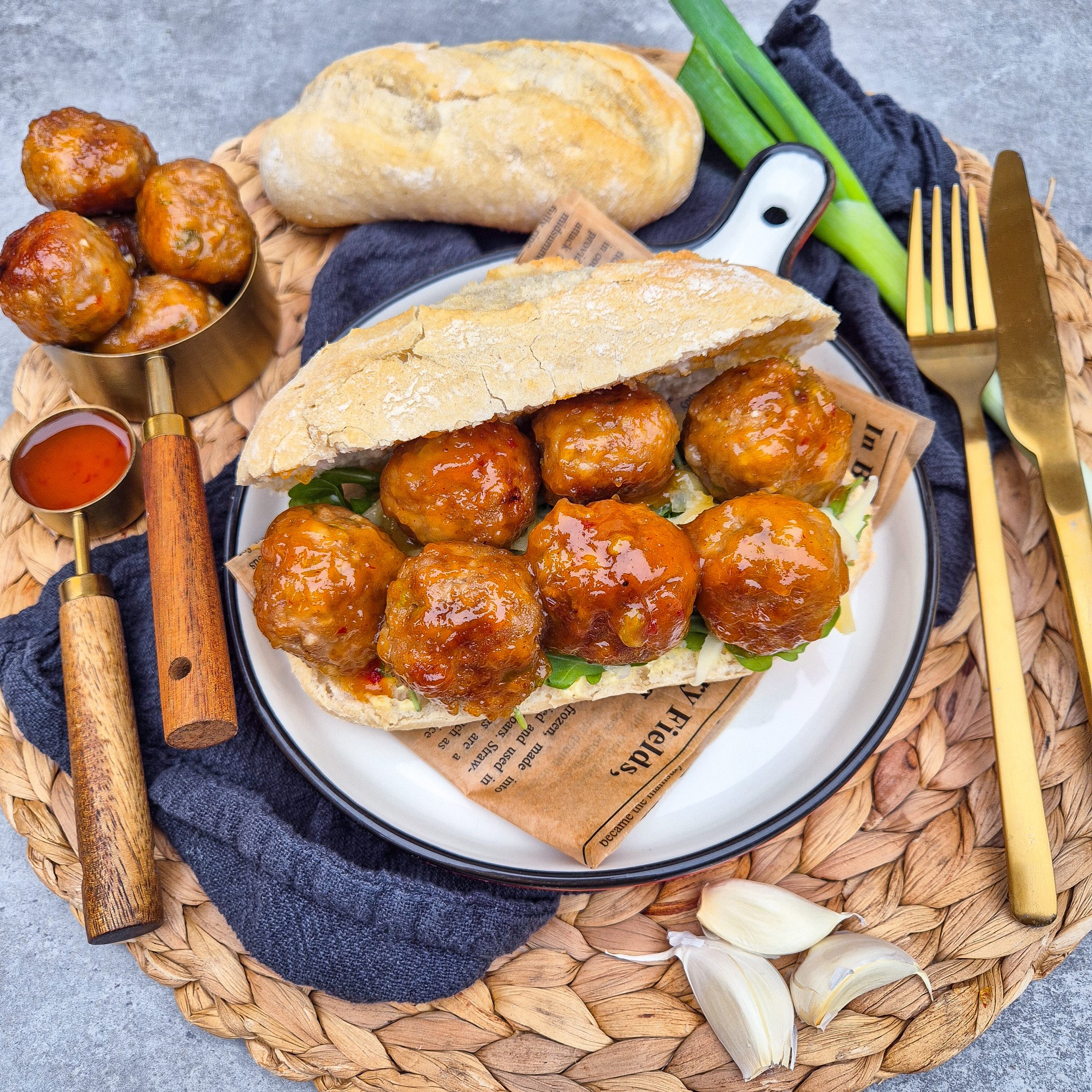 Broodje kipgehaktballetjes in chilisaus