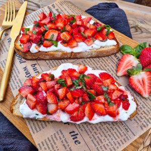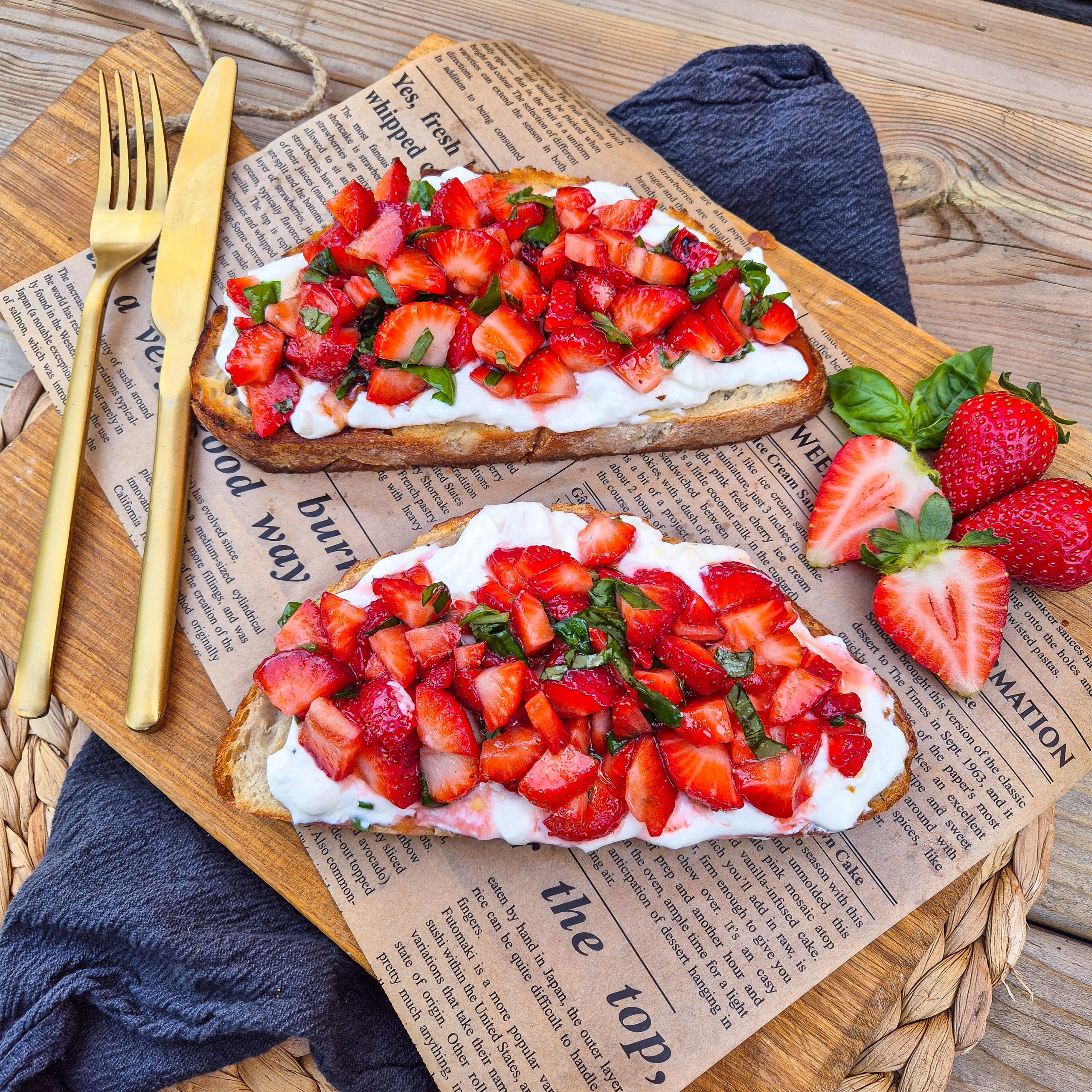 Een verrassende combinatie van romige burrata, zoete aardbeien en frisse basilicum op knapperige toast. Afgewerkt met balsamico crème voor een perfecte balans tussen zoet en hartig. Deze burrata toast met aardbeien is een snelle, zomerse lunch of een stijlvol borrelhapje dat in slechts 10 minuten op tafel staat.