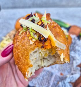 Salade met rauwe ham, meloen en gemarineerde mozzarella bolletjes