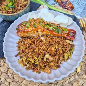 Een heerlijk rijst gerecht bomvol smaken. Heb jij het al eens gegeten? Gebakken rijst? Zo nee, dan moet je dit recept echt eens maken. Het is een eenvoudig maar verrukkelijk recept, door de verschillende ingrediënten creëer je een gerecht die bol staat van smaak. En de gemarineerde zalm maakt dit gerecht gewoon helemaal af. Door de honing en sojasaus, krijgt de zalm een zoete en plakkerige smaak wat dus perfect past bij de gebakken rijst. Nieuwsgierig geworden? Lees dan snel verder