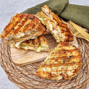 Brood, ik hou ervan. Of het nu een verse boterham is met kaas of een heerlijk rijk belegd broodje. Maar ook van een broodje pindakaas wordt ik gelukkig. Maar voor dit Recept koos ik voor een heerlijke tosti met een explosie aan smaken. Ik combineerde Kip gehakballetjes met Pesto, Mozzarella, Tomaten en Aioli tussen krokant gebakken boterhammen.