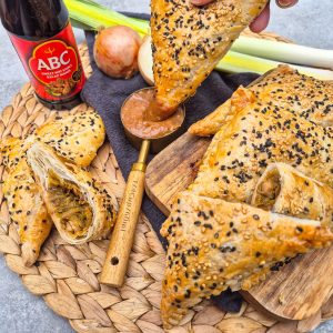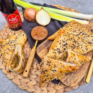 Kipsaté-bladerdeeghapjes zijn de perfecte combinatie van knapperig bladerdeeg en mals gemarineerde kip met een heerlijke zoet-hartige smaak. Als je dol bent op makkelijke bladerdeeg recepten of vaak op zoek bent naar simpele borrelhapjes met kip, dan is dit een gerecht dat je zeker wilt proberen.Op mijn website vind je al veel bladerdeeg recepten én kiprecepten, dit recept brengt die twee werelden samen. De kip marineer ik in de rijke, ABC Zoete Sojasaus (Ketjap Manis), waardoor de vulling een authentieke Indonesische smaak krijgt: In combinatie met knoflook, specerijen en het goudbruine krokante bladerdeeg ontstaat er een onweerstaanbaar hapje dat bij elke gelegenheid past.Deze kipsaté-bladerdeeghapjes zijn ideaal als borrelhapje tijdens een feestje, als warme snack op een verjaardag of als hartig tussendoortje. Serveer ze bij een salade voor een snelle lunch, of zet ze op tafel bij de vrijdagmiddagborrel. Ze zijn eenvoudig om te maken, goed voor te bereiden en altijd een hit bij zowel kinderen als volwassenen.Kortom: ben je op zoek naar een makkelijk recept voor bladerdeeghapjes met kip? Dan zijn deze kipsaté-bladerdeeghapjes een absolute aanrader! Lees snel verder hoe je dit recept maakt.