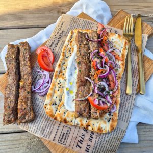 Je kunt de kebab 2–3 dagen in de koelkast bewaren in een afgesloten bakje. Opwarmen kan in de oven, airfryer of koekenpan zodat het vlees weer warm en licht knapperig wordt.