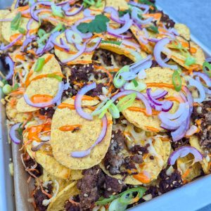Nacho's iets wat je op iedere borrelkaart in restaurants en cafés wel tegenkomt. De ene nog lekkerder dan de andere. Maar ze zijn zelf thuis ook heel makkelijk te maken en staan binnen no-time op tafel. Heerlijk bij een borrel avond, glaasje droge witte wijn erbij "Perfect". Ik hou van een standaard nacho schotel maar hou er helemaal van als er een twist aan zit. Zo heb ik al een keer nacho's met ossenworst gemaakt Nacho's – Koken met liefde en staan de big mac nacho's ook nog op het to make lijstje. Deze keer koos ik voor Nacho's met een Aziatische twist. Heerlijk gekruid vlees, met de knapperige nacho's de gesmolten kaas en een pittig sausje. Nieuwsgierig naar het recept van de Nacho's met Aziatische twist, lees dan snel verder.