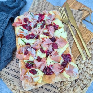 Heb jij al eens een pinsa geprobeerd? Als je deze eenmaal geproefd hebt dan ben je verkocht. Ik gebruik voor dit recept de pinsa van Bella Italia. Door de honinggraat heeft de pinsa een lichte en knapperige textuur. Ik maakte een combinatie van Romig (brie), zoutig (ham) en zoet (cranberry jam). Deze combinatie is gewoon verrukkelijk (al zeg ik het zelf). Nieuwsgierig geworden? Lees dan snel verder hoe je deze heerlijke pinsa met bire, rauwe ham en cranberry's maakt.
