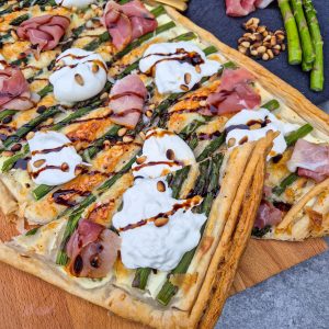 Oh wij houden hier thuis van Plaattaarten. Ze zijn eenvoudig om te maken, en je kan er zoveel variaties mee maken. Ik heb ondertussen al meerdere recepten voor plaattaarten online staan Plaattaarten/ Bladerdeeg Archieven – Koken met liefde en blijf het leuk vinden om nieuwe variaties te maken en te ontwikkelen. Deze keer koos ik voor een plaattaart met groene asperges. De combineerde ik met romige burratine en rauwe ham. En heerlijke combinatie als je het mij vraagt. Lees snel verder hoe je deze heerlijke plaattaart maakt