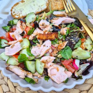 Salade met gemarineerde zalm