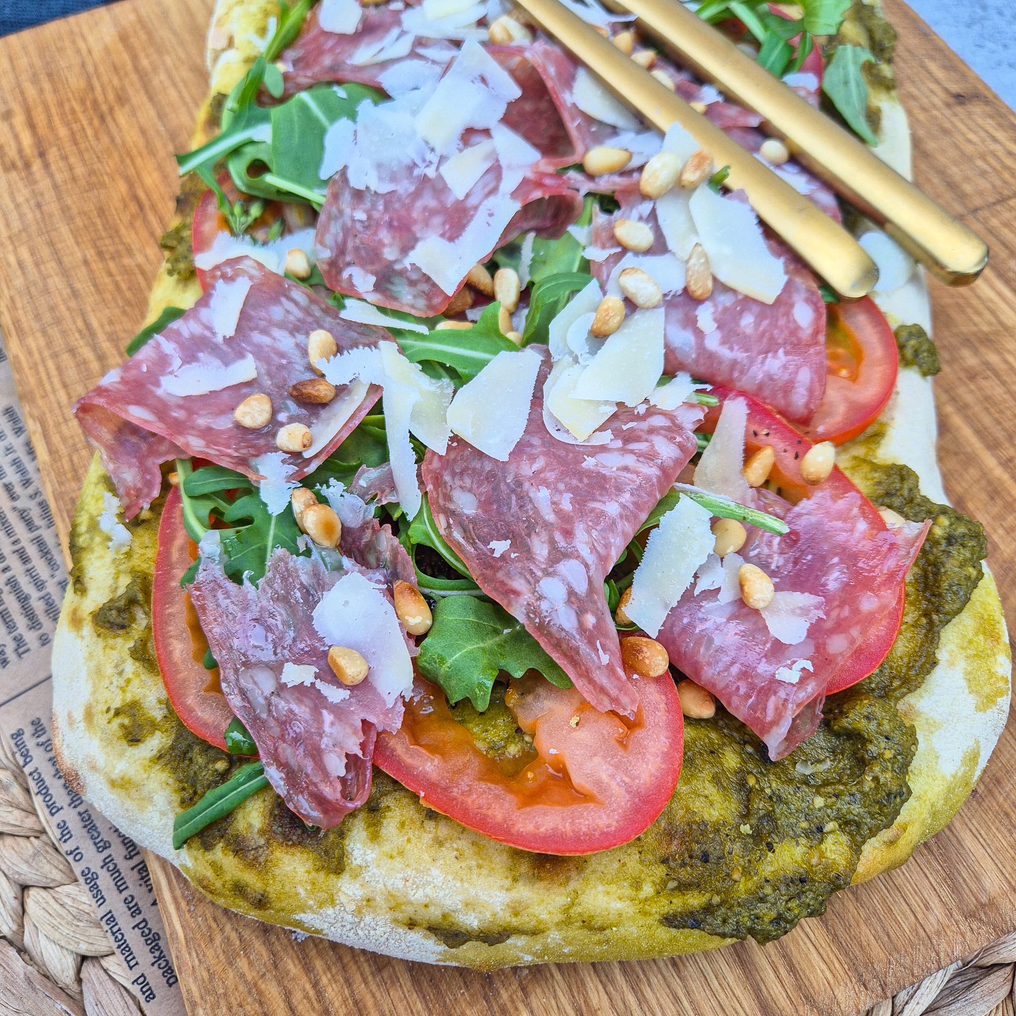 - Zet de pinsa in de oven (zoals beschreven staat op de verpakking)